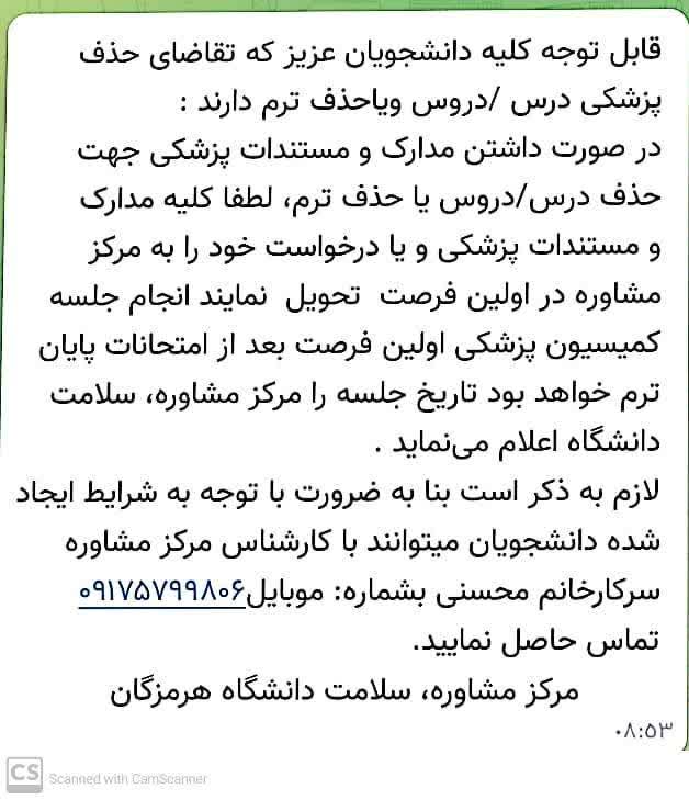 قابل توجه دانشجویان متقاضی حذف پزشکی درس