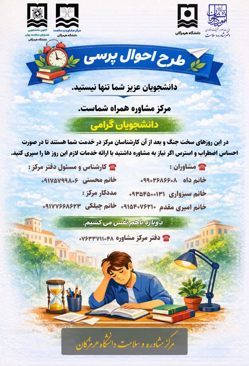 دانشجویان عزیز شما تنها نیستید.مرکز مشاوره همراه شماست.